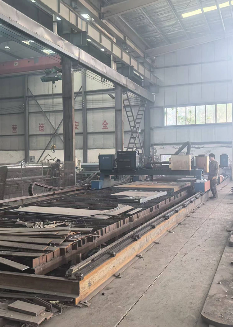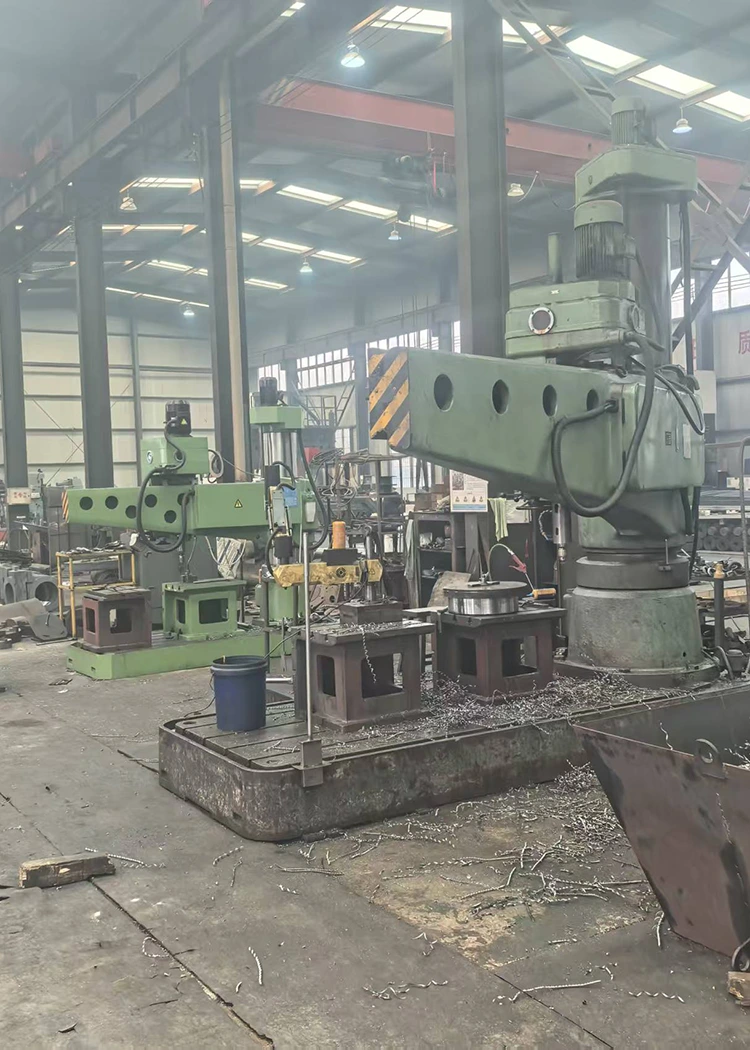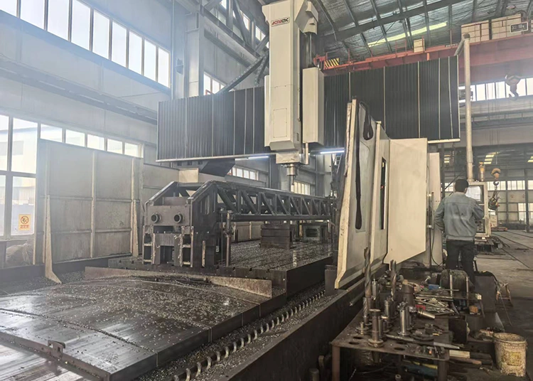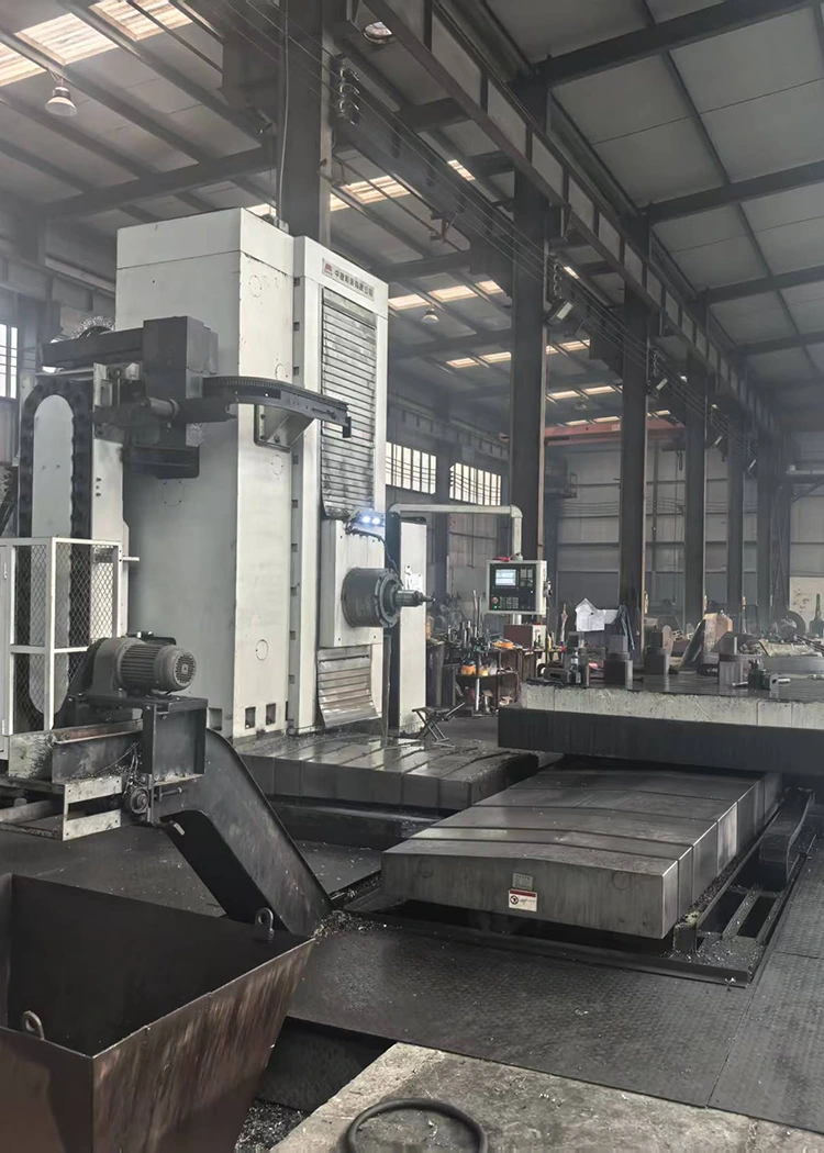 Jeśli chodzi o sprzęt do obróbki CNC, posiadamy portalowe centra obróbcze CNC wielu marek. Przykładowo tajwańska marka Taizheng obejmuje jedną jednostkę o wymiarach 8,5m*4,6m*2m i ładowności 45 ton, jedną jednostkę o wymiarach 6m*3m*1,5m i ładowności 25 ton oraz jedną jednostkę o wymiarach 3m*2m*1,05m i ładowności 15 ton. Marka Qingdao Yongji obejmuje jedną jednostkę o wymiarach 6m*3,2m*1,7m i ładowności 25 ton oraz jedną jednostkę o wymiarach 12m*8m*4m i ładowności 100 ton. W naszej ofercie znajdują się także dwa centra obróbcze CNC marki Dalian Machine Tool o wymiarach 850mm*500mm*400mm i nośności 25 ton. Dodatkowo posiadamy jedną wytaczarko-frezarkę podłogową marki Wuzhong typu 160 o wymiarach 6m*2,8m*1,25m i udźwigu 100 ton. Posiadamy również pełną gamę tokarek pionowych i poziomych CNC. Przykładowo, istnieje jeden model tokarki pionowej CNC marki Qiqihar, 2,5m*1,6m, o nośności 32 ton; jedna tokarka pozioma CNC firmy Anyang Machine Tool, 3000mm*800mm, nośność 6 ton; trzy tokarki poziome CNC firmy Dalian Machine Tool, 1500mm*400mm, nośność 3 tony; oraz jedną poziomą tokarkę CNC firmy Dalian Heavy Industry, 17m*2,5m, nośność 100 ton. W przypadku konwencjonalnych tokarek poziomych posiadamy jedną jednostkę z Drugiej Fabryki Obrabiarek w Tianjin o specyfikacji 11m*1m i nośności 15 ton; kilka jednostek firmy Anyang Machine Tool, w tym 8m*1m (15 ton), 3m*1,25m (10 ton) i 1,5m*1m (10 ton); oraz trzy jednostki firmy Shenyang Machine Tool o wymiarach 3m*∅0,8m i nośności 5 ton. Posiadamy również frezarki obwiedniowe i dłutownice. Obróbka obwiedniowa przekładni pochodzi z fabryki obrabiarek Chongqing, z 2 m i 20 modułami, jedna jednostka; dłutownica pochodzi z fabryki obrabiarek Fushun, 500 mm, jedna jednostka. Jest jedna konwencjonalna frezarka bramowa z Pierwszej Fabryki Obrabiarek w Pekinie, 3m*1m*1,2m, 20 ton; oraz 110-cyfrową wytaczarko-frezarkę z Kunming Machine Tool Factory, 1,5m*1m*1m, 5 ton. Do szlifierek i wiertarek posiadamy dwie zewnętrzne szlifierki cylindryczne z Shanghai Machine Tool Factory, 1,5m*0,35m; oraz wiertarki z fabryki przyjaźni Zhongjie, jedna jednostka 80 mm, dwie jednostki 50 mm. Jeśli chodzi o sprzęt do cięcia i prasowania, posiadamy maszynę do cięcia plazmowego płomienia marki Jiangsu, 24m*4m, jedna jednostka; prasy do tłoczenia obejmują jedną jednostkę o masie 300 ton z fabryki obrabiarek Wuxi i jedną jednostkę o masie 100 ton z fabryki obrabiarek w Tianjin. Istnieją dwie maszyny do walcowania blach o specyfikacji 2500 mm * 20 mm. Wystarczający jest również sprzęt suwnicy, w tym jedna jednostka 100-tonowa, jedna jednostka 50-tonowa, dwie jednostki 32-tonowe, jedna jednostka 20-tonowa, jedna jednostka 16-tonowa i siedem jednostek 10-tonowych.